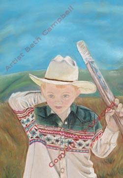 BACK Painting of Cowboy Cody ready to chase calves by Beth Campbell